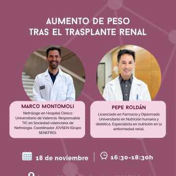 Ofrecer una formación actualizada sobre cómo el sobrepeso/obesidad afecta a las personas con enfermedad renal, hábitos a evitar y uso racional de medicamentos.